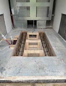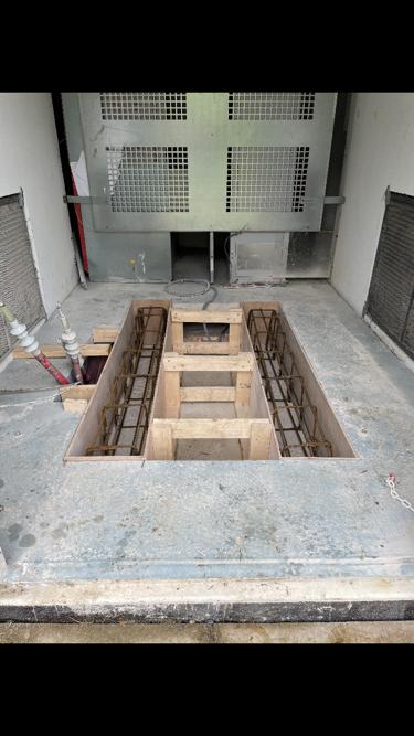 Once the concrete has cured the internal shutter were removed and the Transformer will sit ontop with its weight compressed directly ontop of the reinforced concreted plinths.