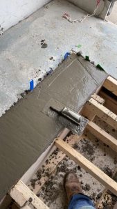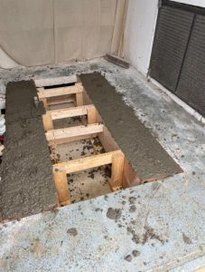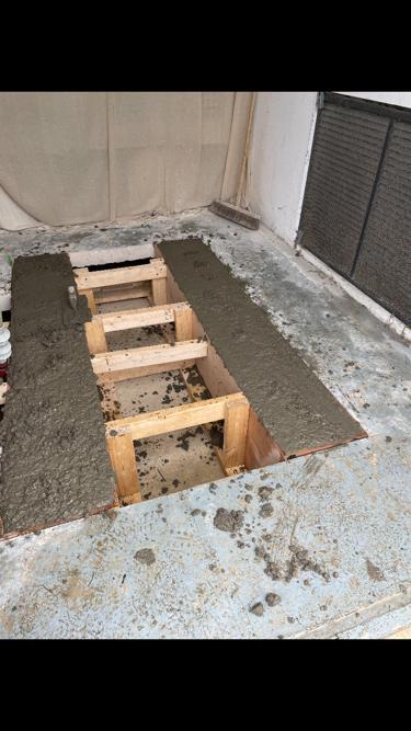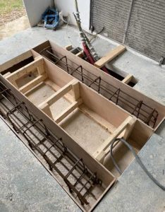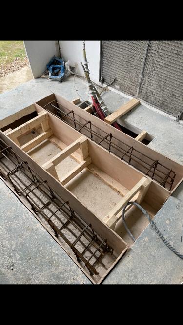 Our team began by cutting into the original concrete base, they then created shutters out of plywood to divide the sections of the base.